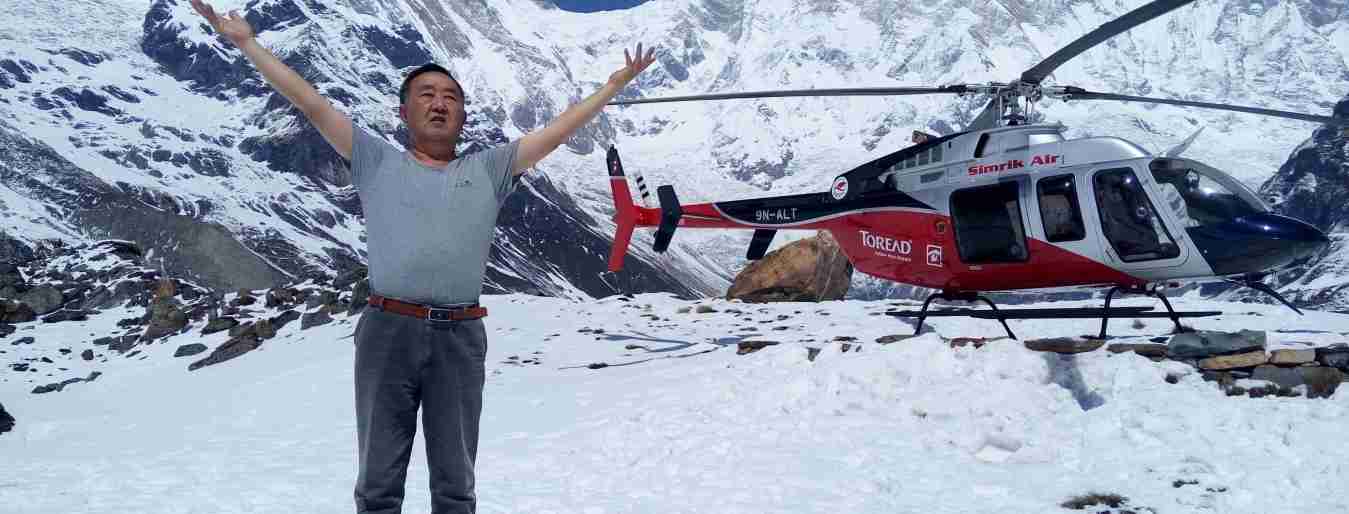 The helicopter flight from Pokhara to Annapurna Base Camp takes approximately 25 minutes each way, allowing enough time to enjoy the scenery and explore the base camp.